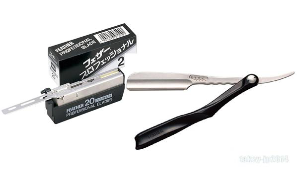 A nyomja meg a FEATHER borotva fejének felső részét, vegye ki a használt pengét. Az adagolóval toljon ki egy új pengét, és helyezze a borotva fejébe.
