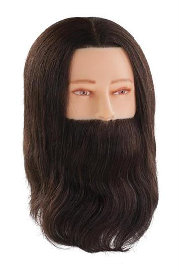 Férfi gyakorló babafej barna 100% természetes 35cm hajjal, és 25cm szakállal, Most ajándék babafej tartóval, a Borbély munkák gyakorlásához.