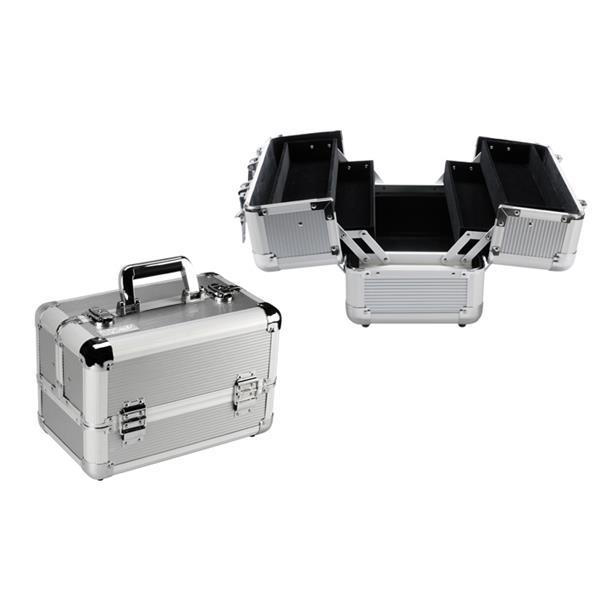 Fodrász táska ezüst alumínium borítással. A sok rekeszből álló, erős alumínium vázzal készült táska, szinte minden célra használható.