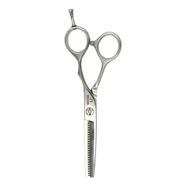 Hajvágó ritkító olló mikrobarázdás vágóéllel, egy oldalon fogazott kivitelben. Ergonómikus kialakítású, acél hajvágó olló. A könnyű és erős edzett acélnak köszönhetően az éle tartós. A hajvágó ollók állítható csavaros szorító rendszerrel készülnek. A csavar teljes kicsavarásával az olló pengék szétválaszthatóak, ezért szükség esetén azok újra élezhetők.